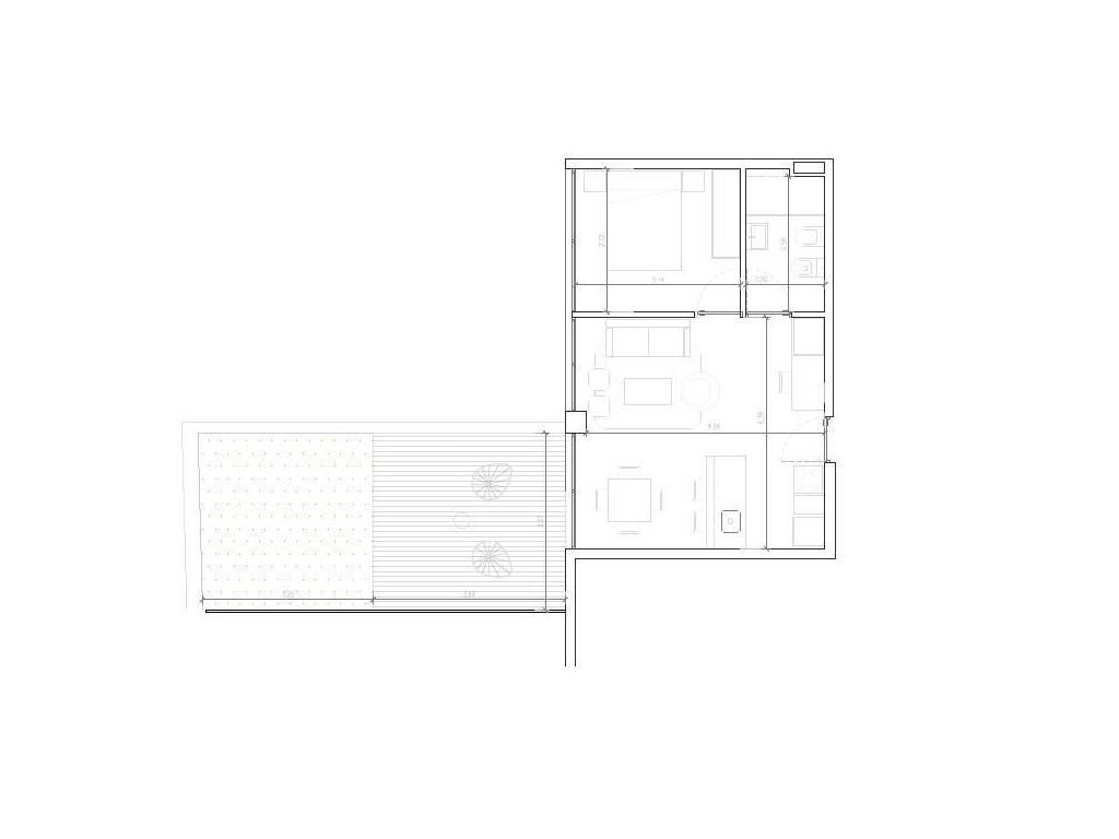 Living comedor con terraza de 25 m2, cocina integrada, 1 dormitorio y 1 baño completo.