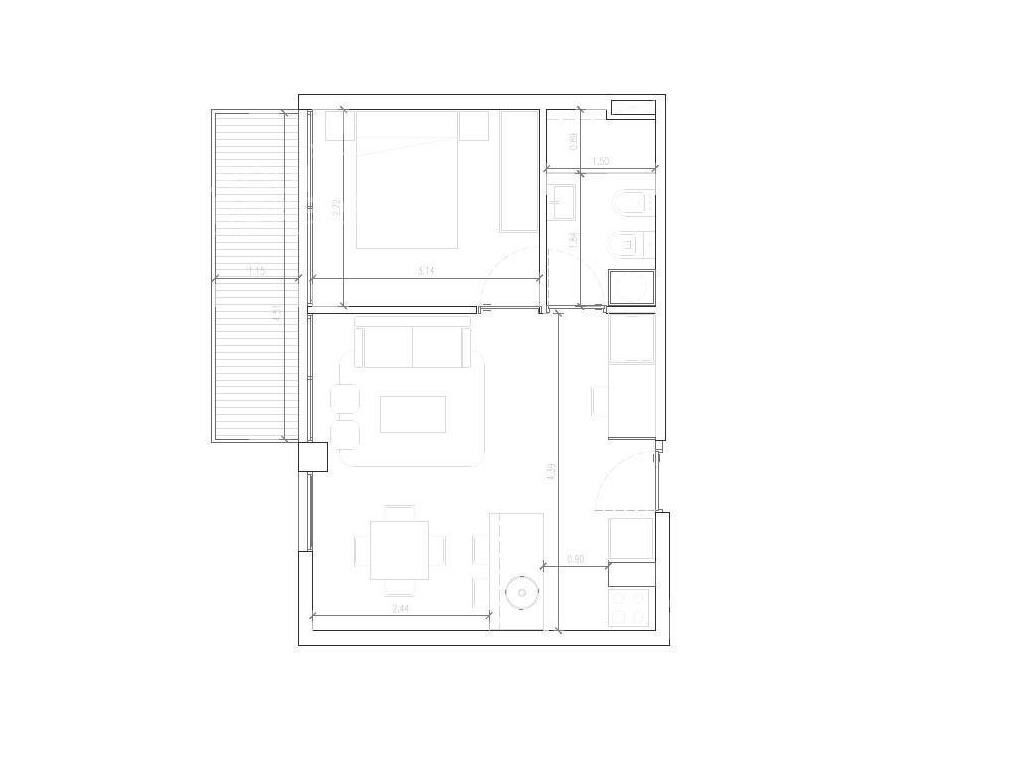 Living comedor con terraza, cocina integrada, 1 dormitorio y 1 baño completo.