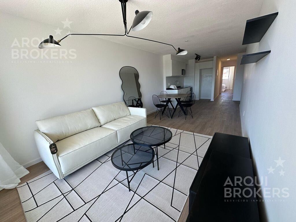 Living comedor con terraza al frente, cocina integrada con placares sobre y bajo mesada, armario para lavarropas y calefón.
