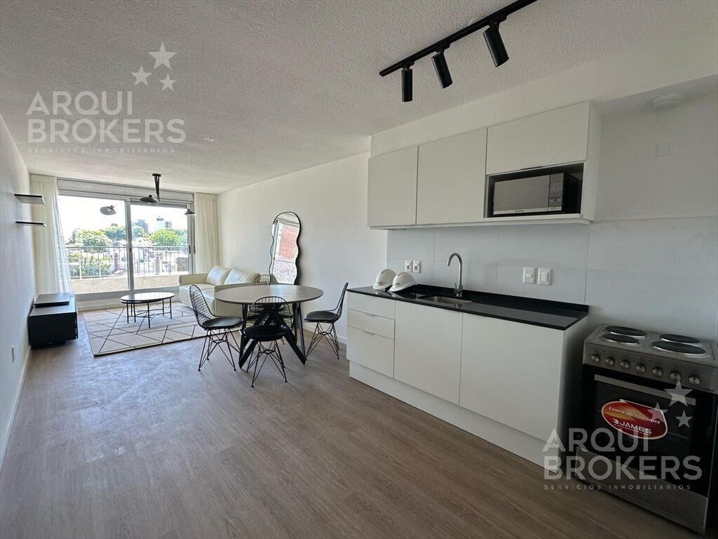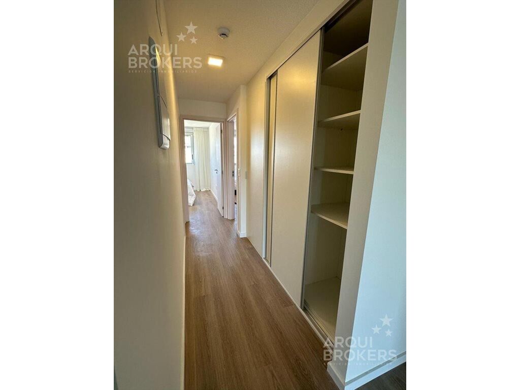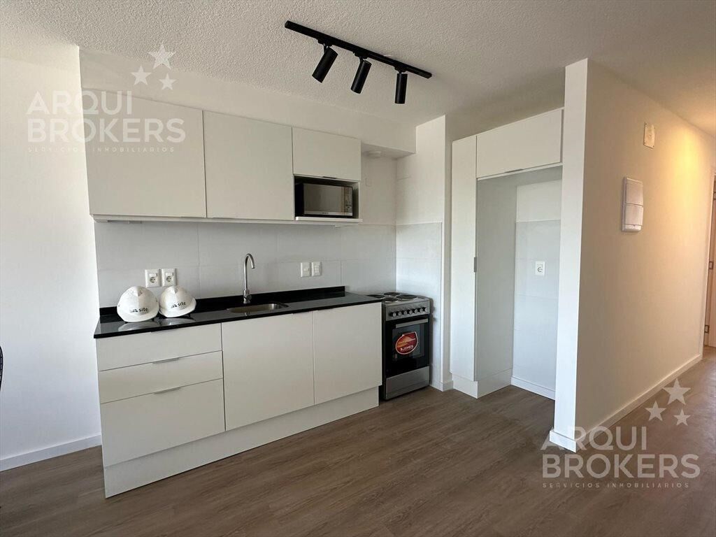 Living comedor con terraza al frente, cocina integrada con placares sobre y bajo mesada, armario para lavarropas y calefón.