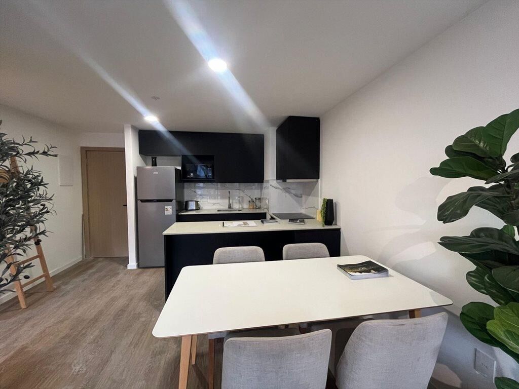 Cocina integrada al living-comedor, equipada con muebles contemporáneos.