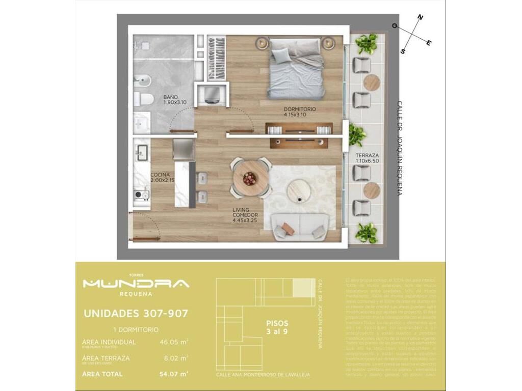 Torres MUNDRA constará de dos torres: Torre Monterroso y Torre Requena, ubicadas en Cordón Soho. Torre Monterroso tendrá 13 niveles, con 39 apartamentos (10 de 2 dormitorios y 29 de 1 dormitorio). Torre Requena también contará con 13 niveles y 31 apartamentos (4 monoambientes, 26 de 1 dormitorio y 1 de 2 dormitorios). Ambas torres tendrán acceso independiente y un diseño moderno. Los garajes estarán en subsuelo y planta baja, con 36 plazas. En el piso 11 habrá comodidades como salón de usos múltiples con parrillero y grande terraza.