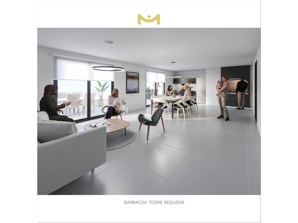 Living comedor con kitchenette y salida a terraza .