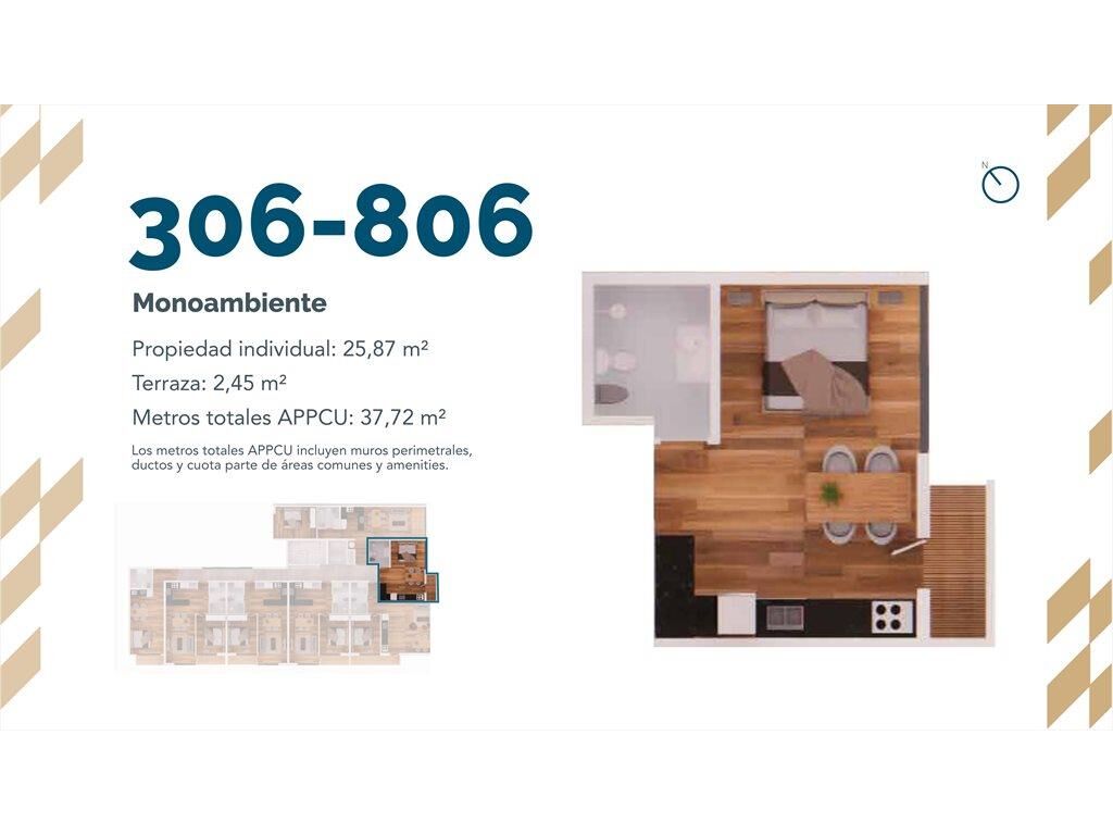 Venta apartamento monoambiente con terraza en Cordón, Montevideo.
