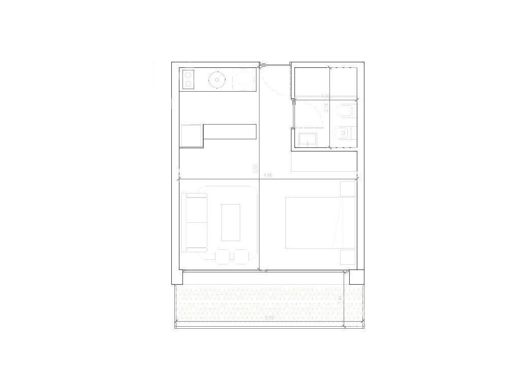 Monoambiente con terraza, cocina integrada y 1 baño completo.