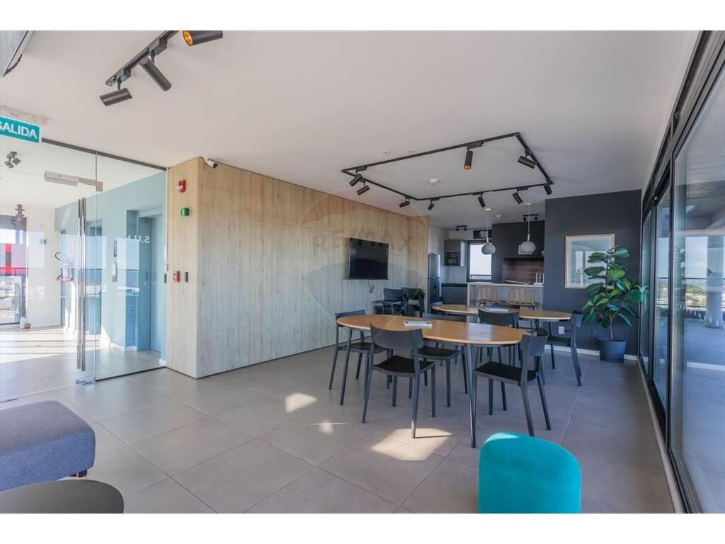El apartamento cuenta con cerradura electrónica. Monoambiente con terraza de servicio. Cocina integrada con mesada de granito color negro, muebles aéreos y bajo mesada con terminación melamínica.