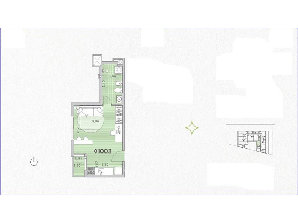 Monoambiente con terraza, cocina integrada, y 1 baño completo.