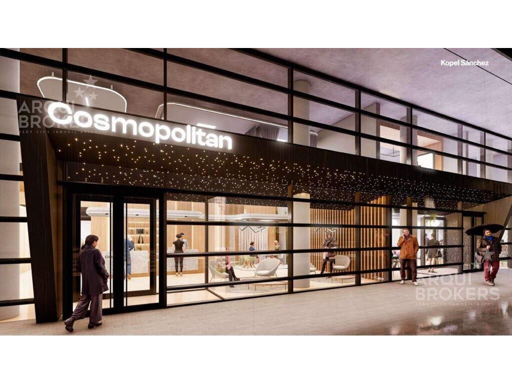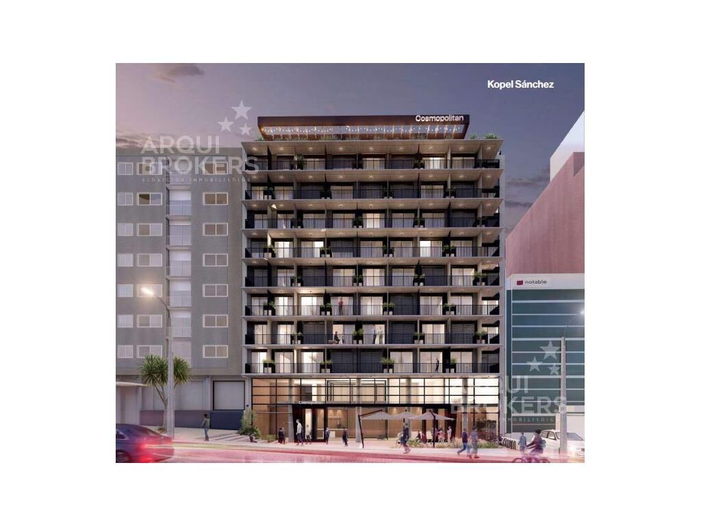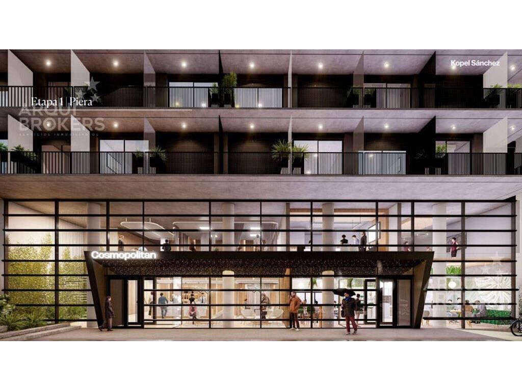 El edificio cuenta con amenities exclusivos como Cowork Café, Open Rooftop Bar, terrazas panorámicas y spa.