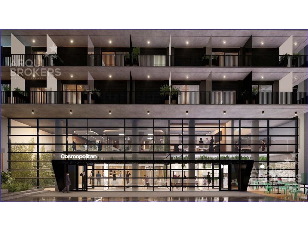 El edificio cuenta con amenities exclusivos como Cowork Café, Open Rooftop Bar, terrazas panorámicas y spa.