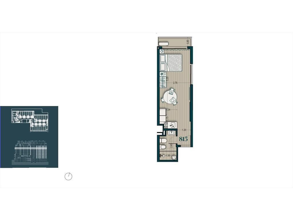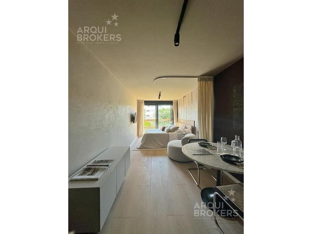 Monoambiente con terraza, cocina integrada y 1 baño completo.