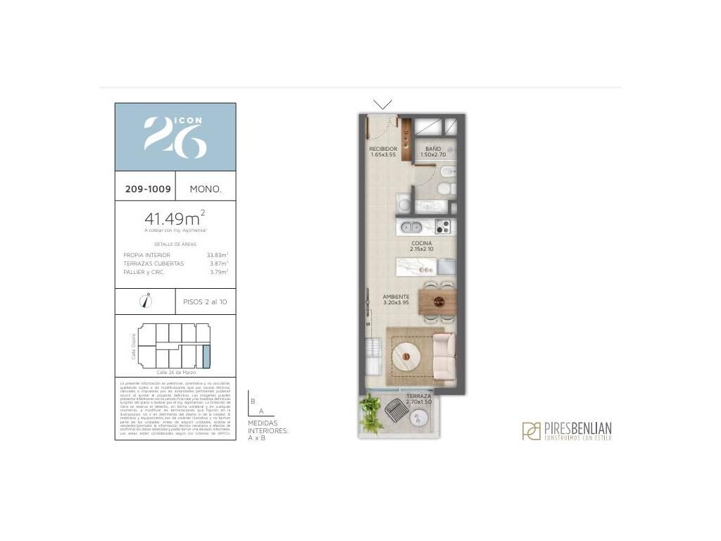La torre de 18 pisos, se implanta con personalidad en la esquina de 26 de Marzo y Osorio, adecuándose a la dinámica de la calle con un gran basamento vidriado envuelto por una pasiva de columnas de doble altura. La base traslúcida contiene el gran lobby de acceso y un local comercial en planta baja, además de un primer piso corporativo de layout libre.