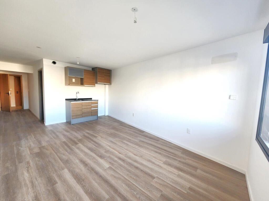 La unidad cuenta con cocina integrada, con muebles aéreos y bajo mesada. Baño completo de dimensiones generosas.