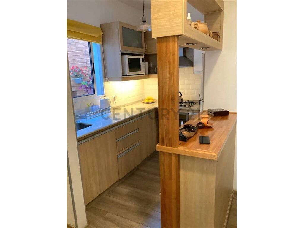 La cocina actualizada, cuenta con horno y anafe empotrados, con barra desayunadora que integra y amplía el espacio.