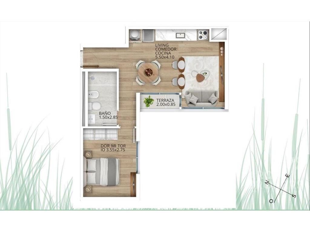 Hall de entrada ideal recibidor. Living comedor con ventanal. Terraza con acceso desde living.