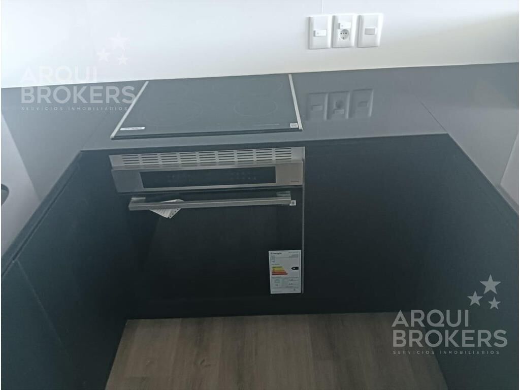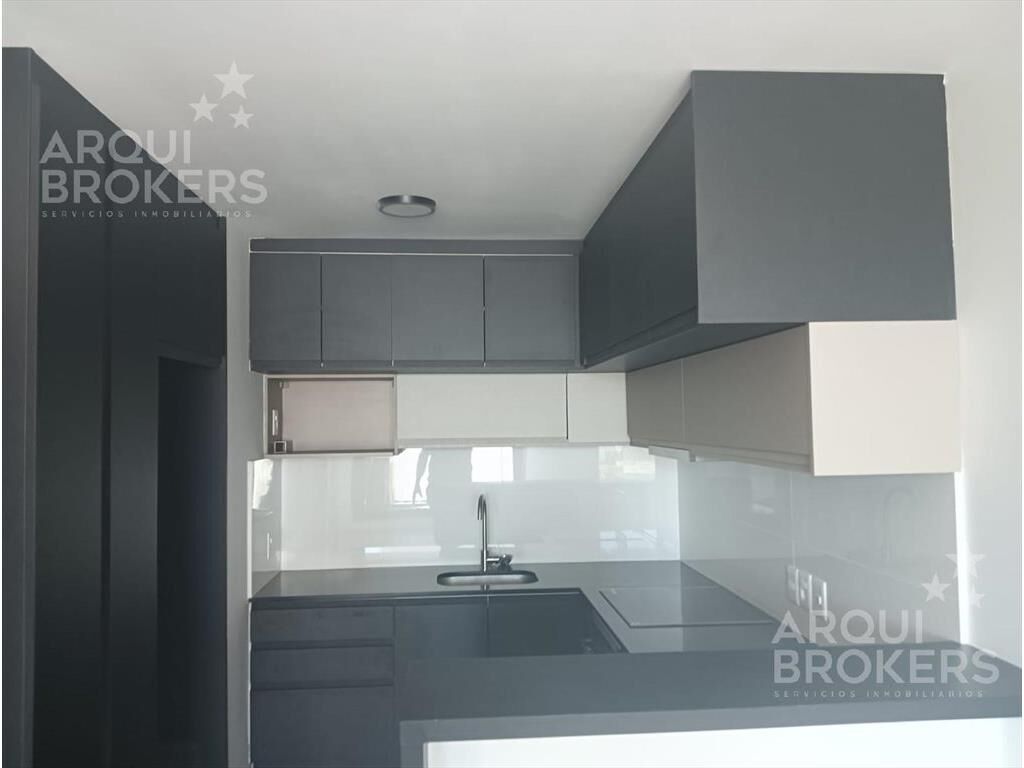 Living comedor con terraza, cocina integrada, 1 dormitorio y 1 baño completo.