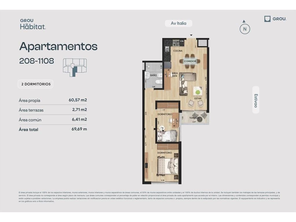 Apartamento en obra, ubicado Av. Italia y Estivao, proyecto Grou Habitat.