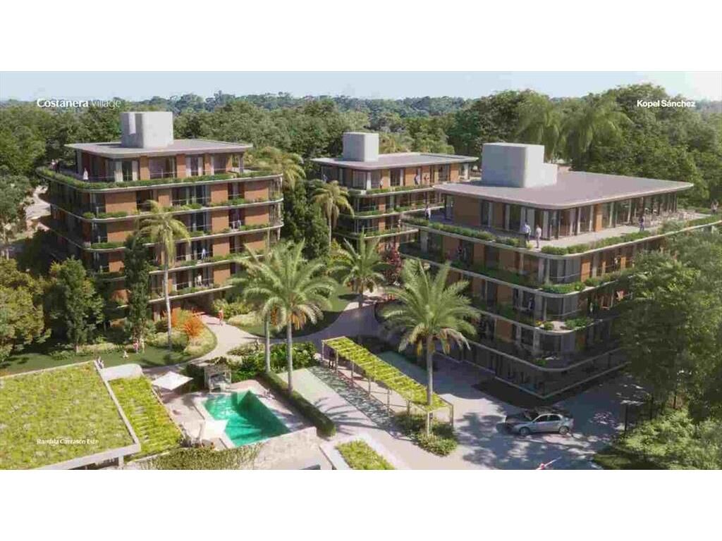 Este exclusivo apartamento forma parte de un proyecto único compuesto por cinco villages contemporáneos, donde cada fachada fue diseñada para integrarse con el entorno y aprovechar al máximo la luz natural y las vistas al mar.