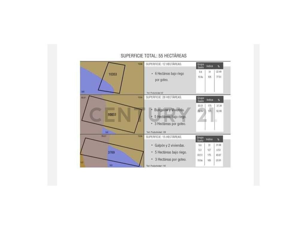 - Un total de 16 hectáreas bajo riego con bombas y filtro de arena para un caudal de 2000 lts por hora.