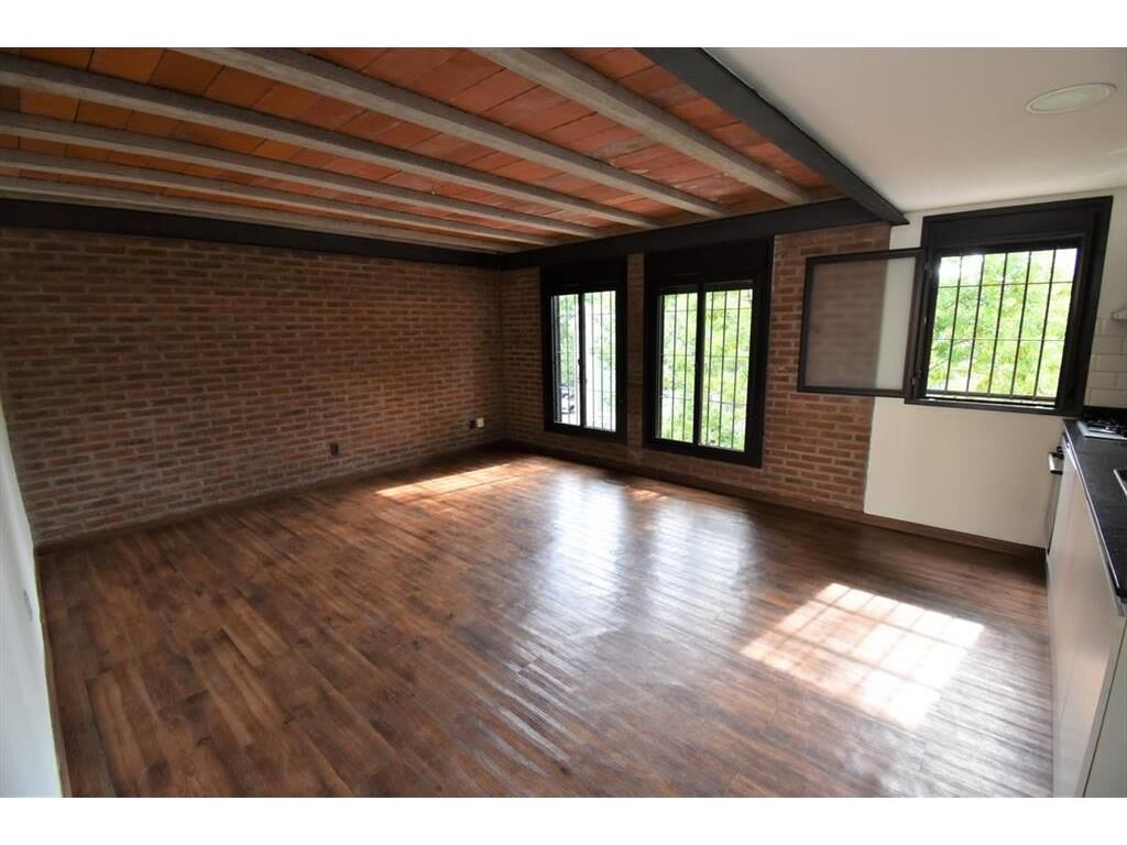 Casa ubicada en primer piso toda exterior, living comedor con ventanales hacia la calle, cocina integrada con anafe, horno eléctrico y campana. Muebles bajo y sobre mesada. Baño completo muy cómodo. Dormitorios con placares y ventanas a la calle, el principal con aire acondicionado.