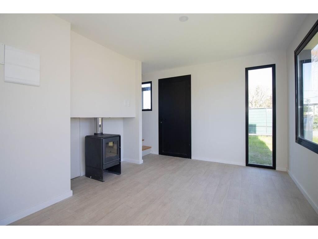 Una vez que ingresamos a la casa nos encontramos con el living comedor y su estufa de alto rendimiento lo que le dará calidez a estos espacios en las épocas de frio.