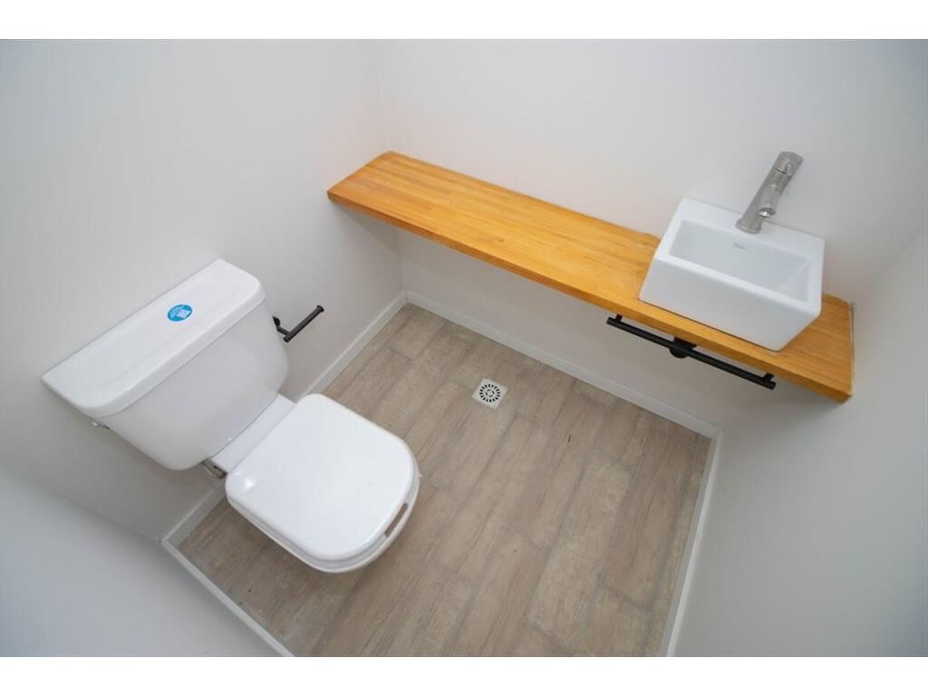 En planta baja también tenemos el baño social, la cocina integrada al living-comedor y desde la cocina salimos a un patio trasero para poder colgar ropa y que esta no empañe la visual y estética del lugar.
