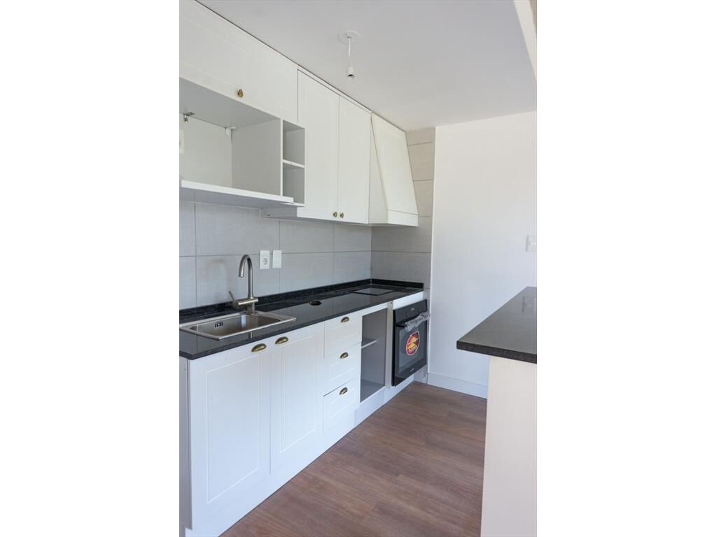 Cocina semi integrada al comedor, equipada con anafe, horno empotrado y campana de extracción.
