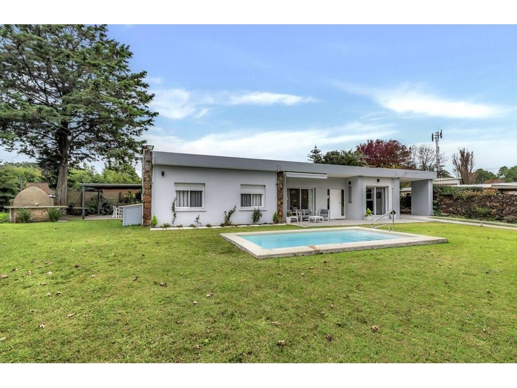 Ofrece un amplio living-comedor con estufa a leña, tres dormitorios (uno en suite), dormitorio de servicio, tres baños completos y una cocina definida. Todos los ambientes cuentan con aire acondicionado. La piscina climatizada y el sistema de riego automático suman confort y practicidad.