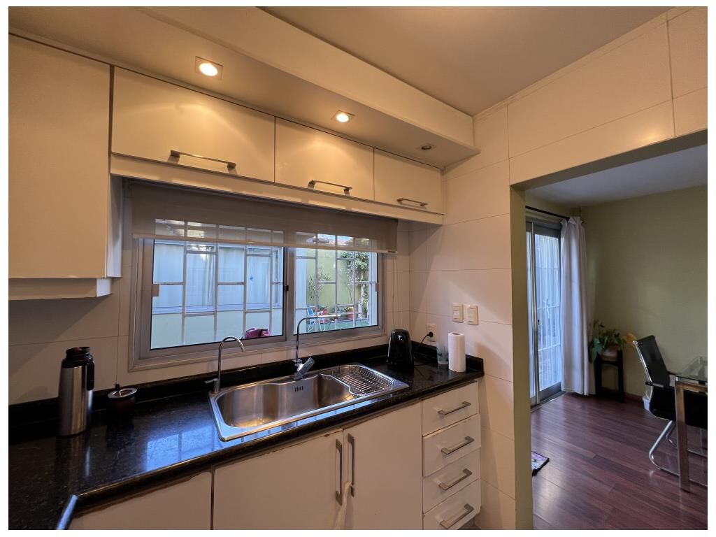 Cuenta con amplio garaje, baño de servicio, fondito, y barbacoa con parrillero, horno y hogar.