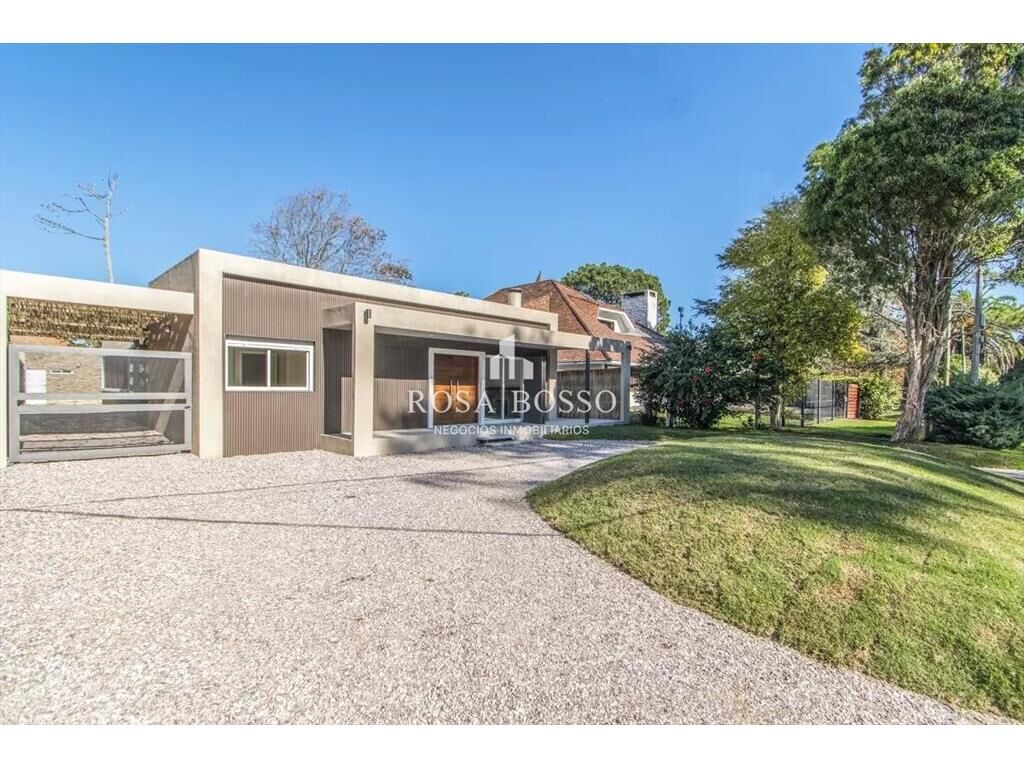 La casa cuenta con 3 dormitorios siendo el principal en suite, 1 un baño completo mas toilette, con una cocina definida equipada con Anafe- Campana- Horno y placard , con capacidad para 7 personas puesto que cuenta con espacio de dependencia de servicio con dormitorio y baño aparte de la casa principal.