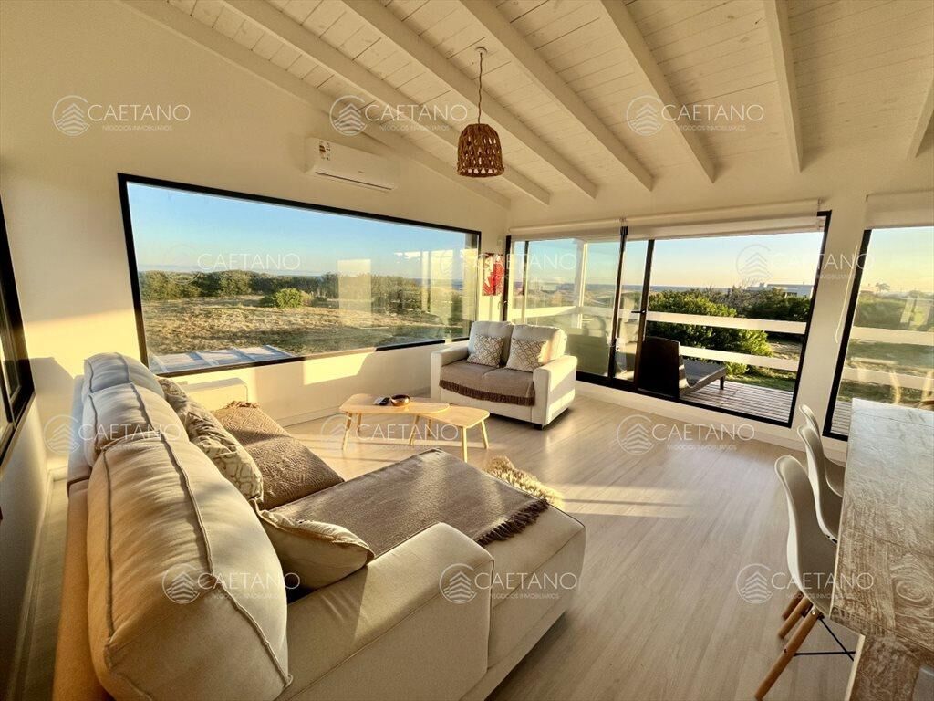 Espectacular casa enclavada en las dunas de Chihuahua, diseño invertido, construcción tradicional de estilo minimalista. Vista al mar en todos sus cuartos. La planta baja es de 83m2, tiene losa radiante en todas sus áreas , cuenta con dos cuartos muy amplios con vista al mar, baño completo, espacio de guardado, lavadero, y un cuarto principal con baño en suite. Todos dan a una cálida galería con vista a las dunas y al mar. La planta alta de 95m2 incluye un enorme living comedor con cocina integrada con isla y mesada en Silestone. Aberturas en doble vidrio. Y lo mejor de todo es una terraza con barbacoa y una vista espectacular al divino mar de Punta Ballena. Los mejores atardeceres de Uruguay ahi mismo. Esta maravillosa propiedad yace sobre un terreno de 1000m2 con salida a la playa y una piscina de diseño estilo Bali de 11 metros de largo.