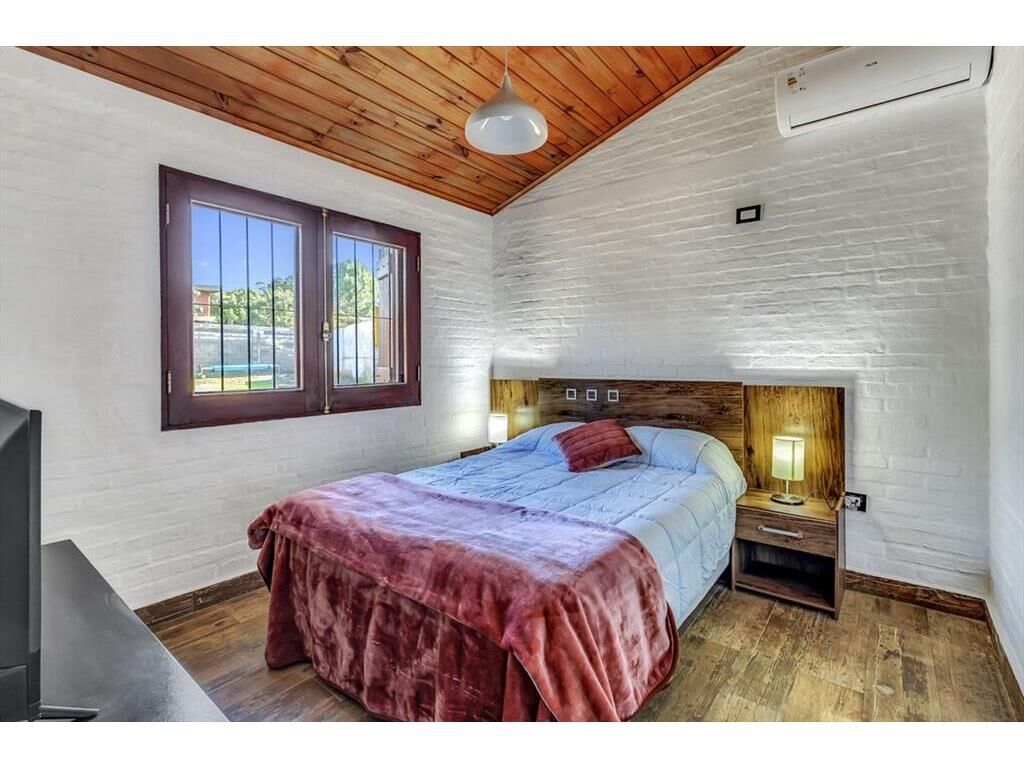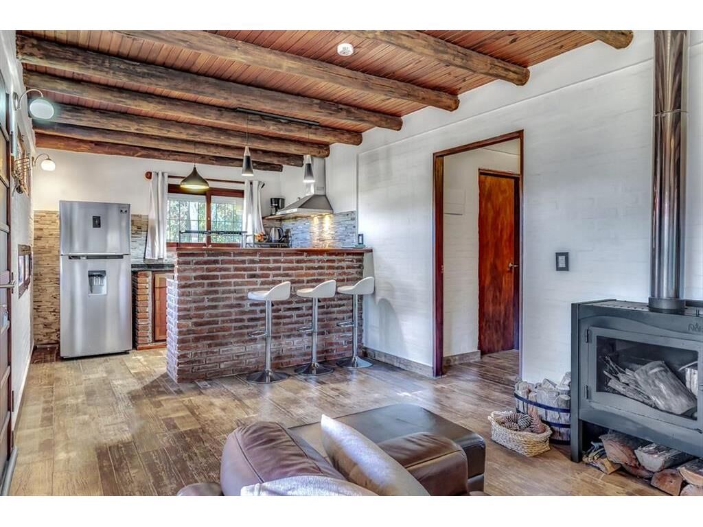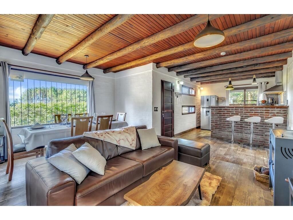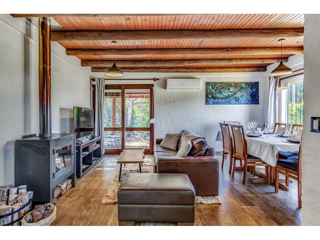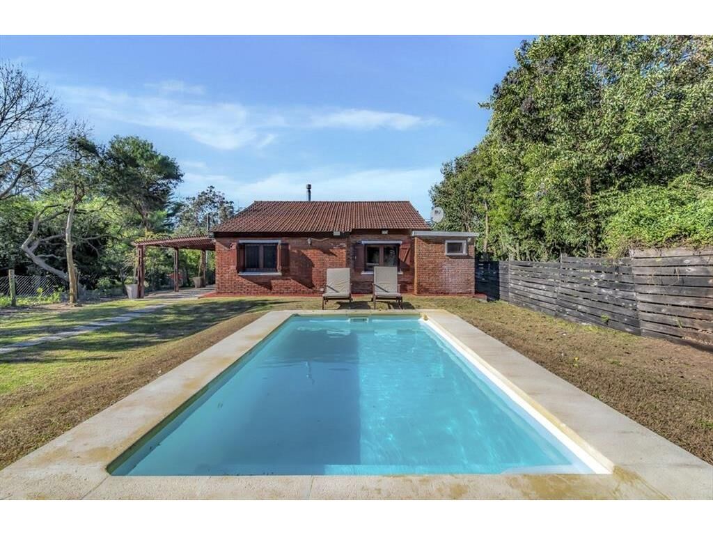 Entre sus destacados interiores, se encuentran 3 dormitorios, 2 baños (uno en suite con jacuzzi), living comedor, cocina integrada con barra, estufa a leña de alto rendimiento y aire acondicionado en todos los ambientes. En el exterior, la propiedad ofrece una piscina climatizada de agua salada, un área de parrillero techado con playroom, y un jardín con diversos espacios sociales. Cuenta también con un ingreso techado para 2 vehículos, con pérgola y chapa de policarbonato.