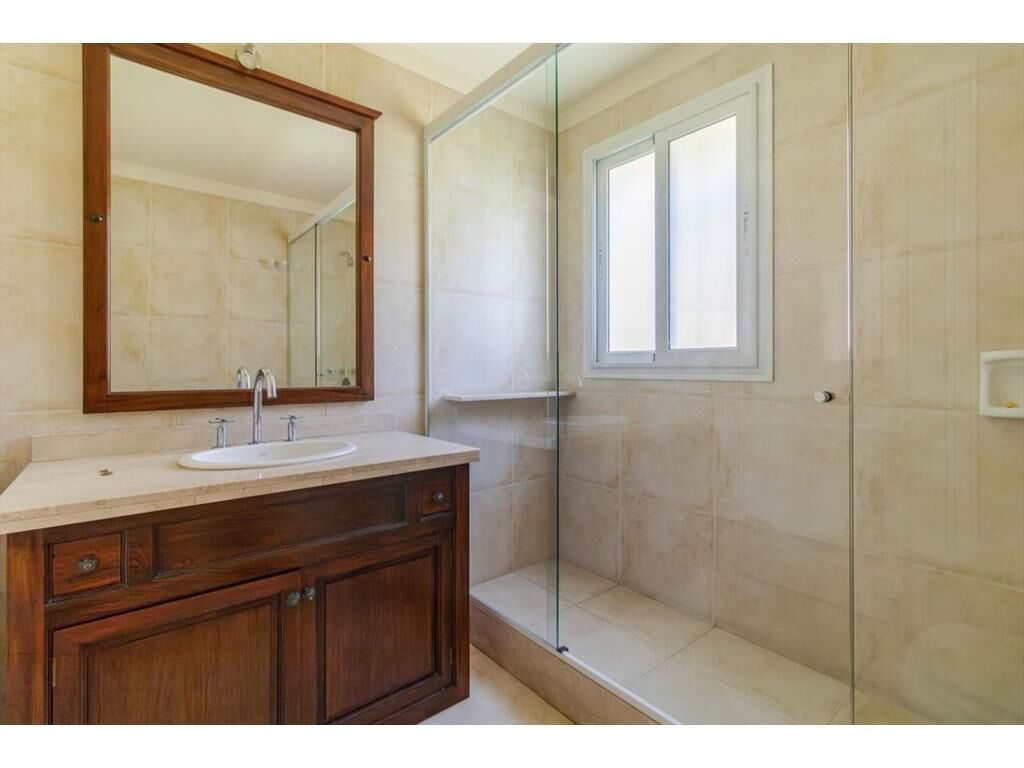 En planta alta tenemos 3 amplios dormitorios en suite con placares y aire acondicionado, gran Master Suite con zona de lectura, vestidor doble, baño en suite con jacuzzi y revestimiento de mármol travertino, y el dormitorio de servicio con baño propio