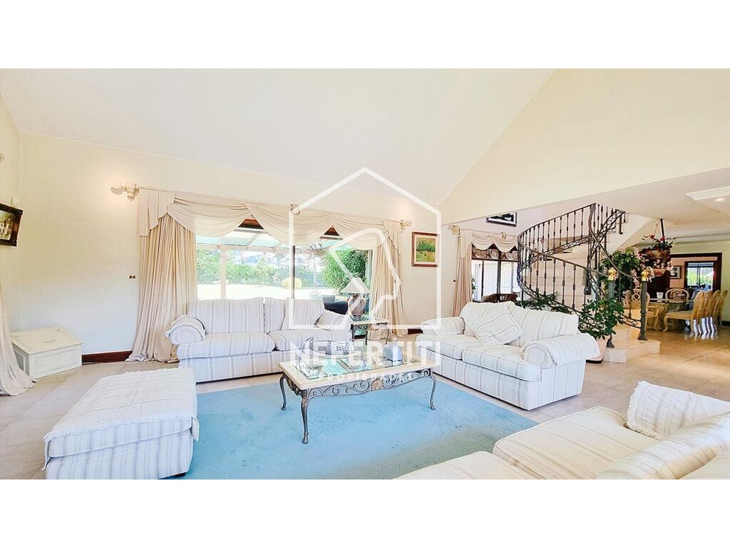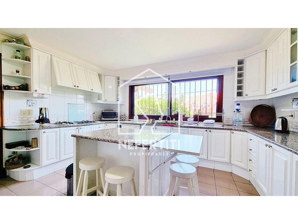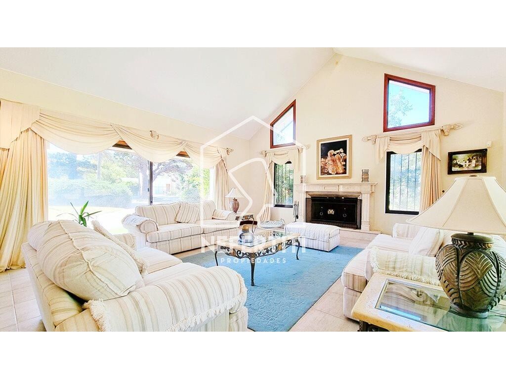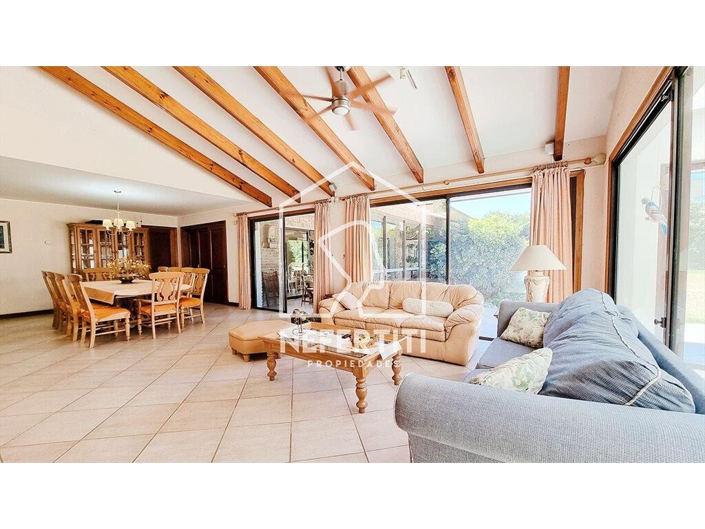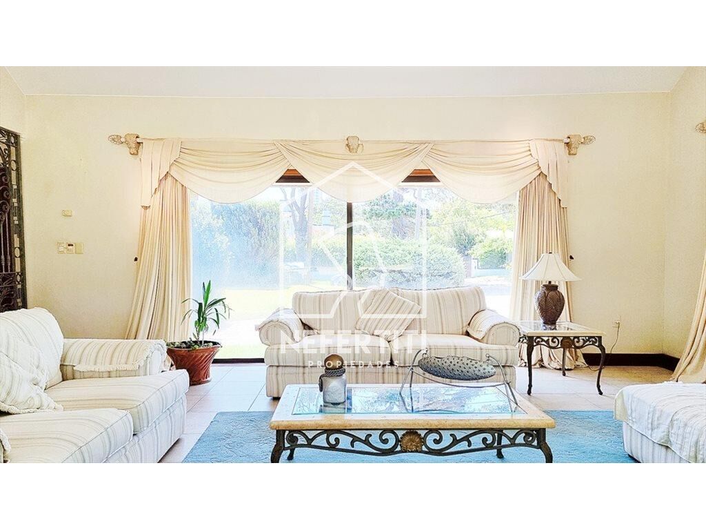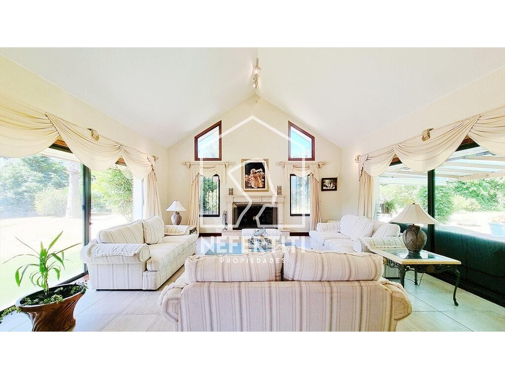 Amplio living con grandes ventanales y techos altos, estufa a leña, importante comedor formal. Toilette. Cocina de buen tamaño, con isla, Lavadero y dependencia de servicio con baño.