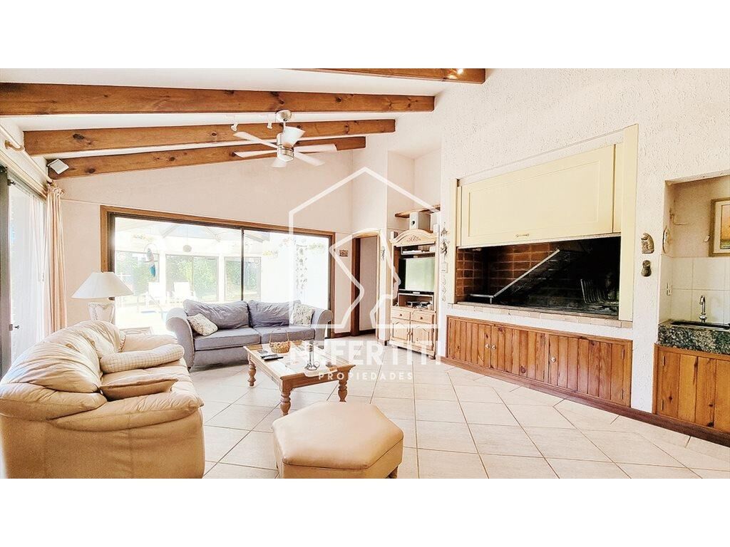 Amplio playroom, barbacoa con living y conexión a la piscina interior climatizada. Galería cerrada desde la cual se disfruta la vista al parque.