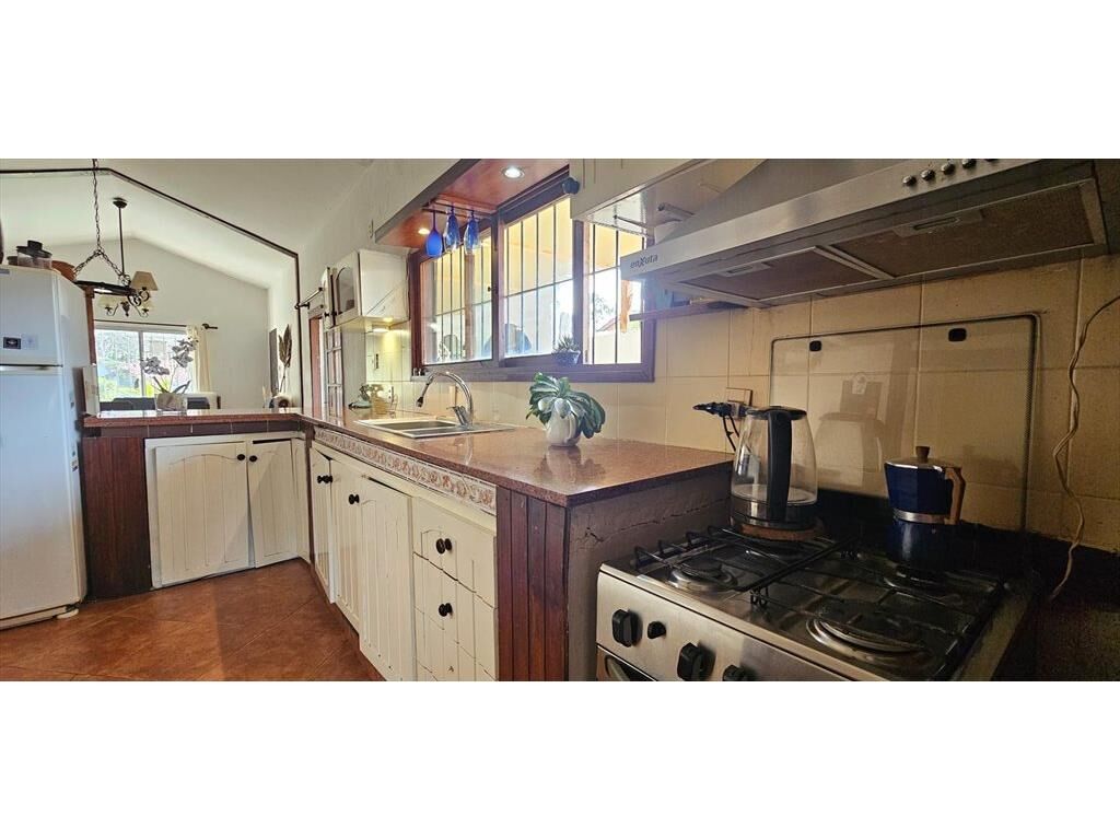 Tres dormitorios, dos baños (uno de ellos en suite), cocina semi definida, muy buen living comedor con estufa tradicional y calefactor a leña cerámico.