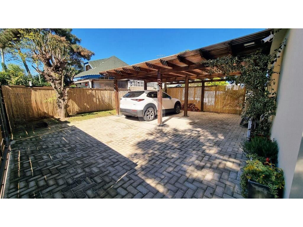 Cochera techada para 2 autos con cerramiento perimetral y portón automático.