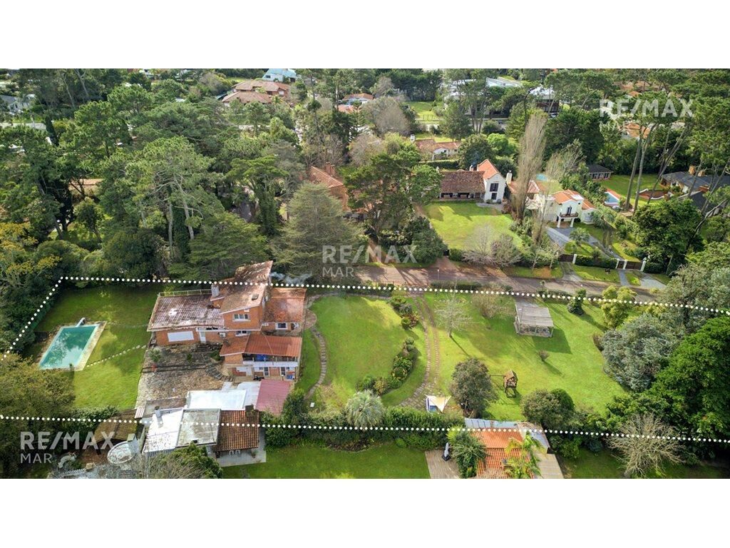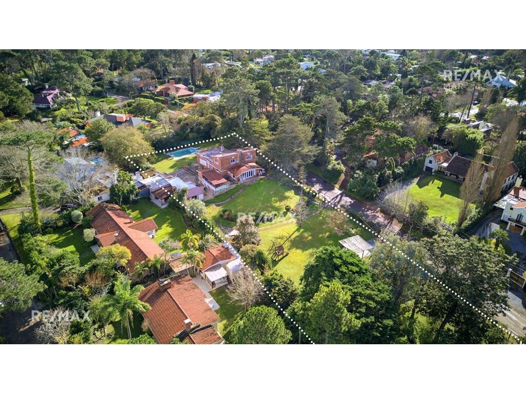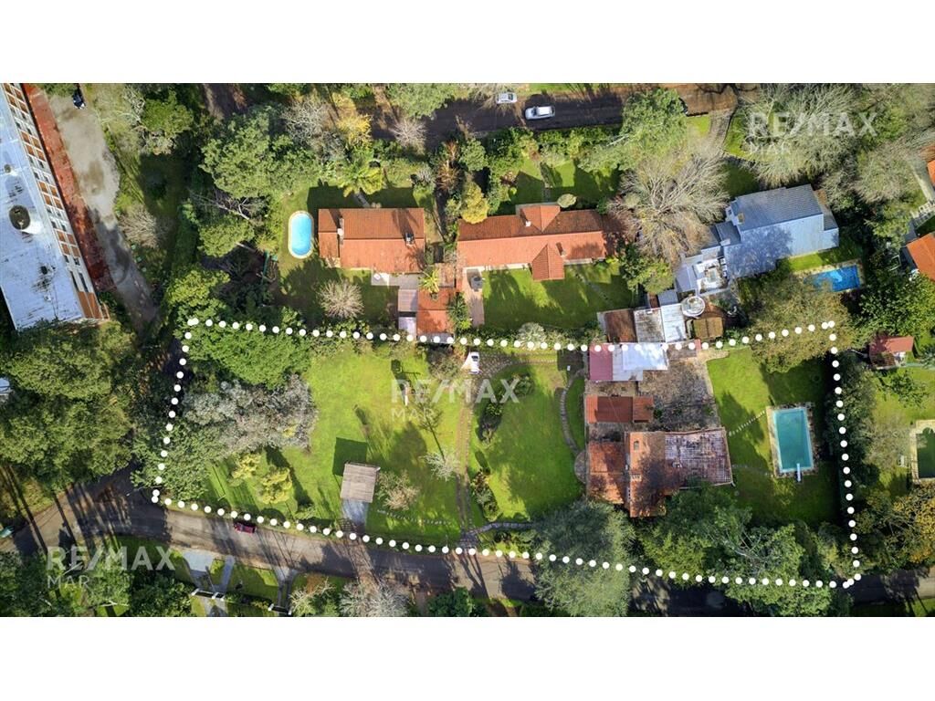 La vivienda se emplaza en un gran terreno de 3869m2 parquizado con Piscina. De construcción tradicional la casa principal cuenta con 8 dormitorios y 6 baños.