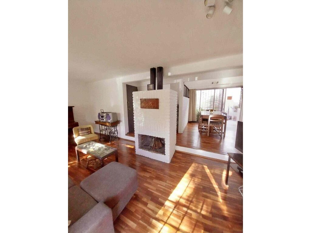 A la derecha, y separado por un desnivel (1 escalón), se encuentra el living con estufa a leña, piso de eucalipto y grandes ventanales con salida a la terraza.