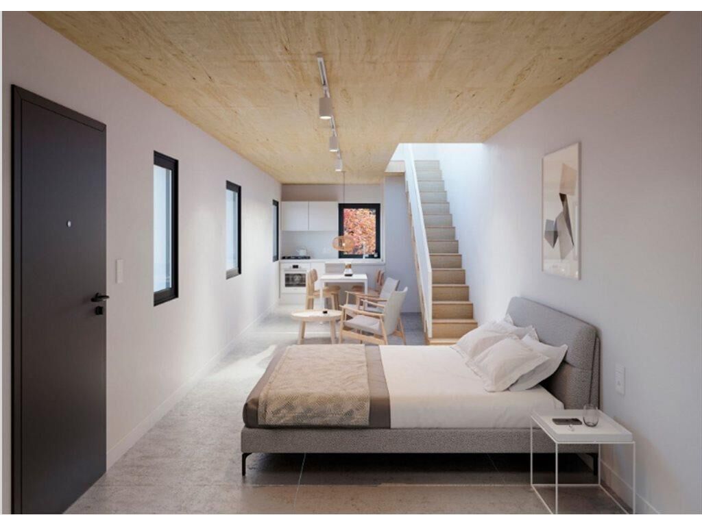 El reciclaje de este espacio, diseñado por los arquitectos Flores Larroza, combina a la perfección la practicidad y el estilo. El living con cocina integrada, el sector dormitorio y el baño completo se integran en una distribución eficiente y fluida.