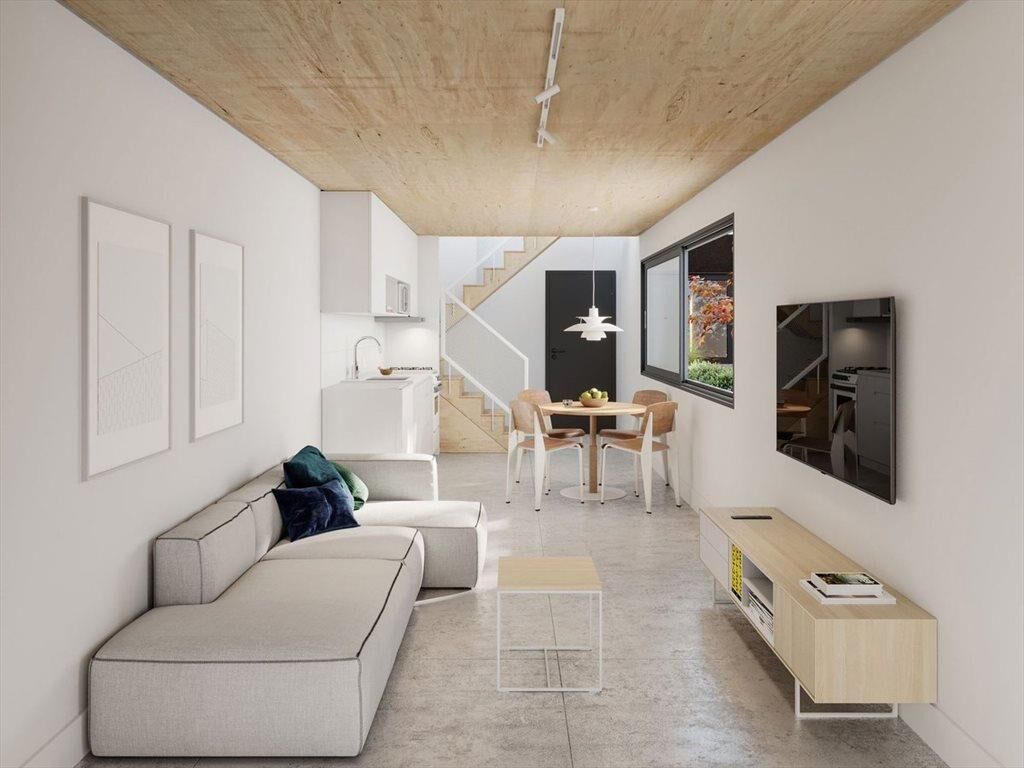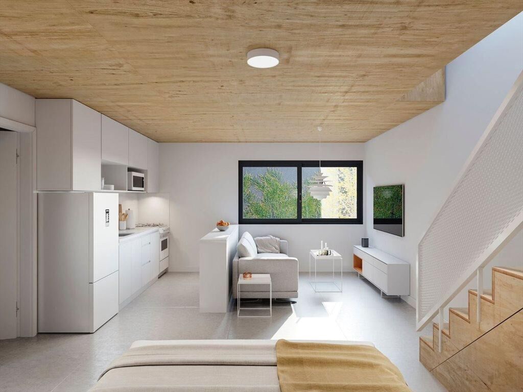 Su distribución incluye un ambiente único que integra living, comedor y cocina, además de un baño completo.