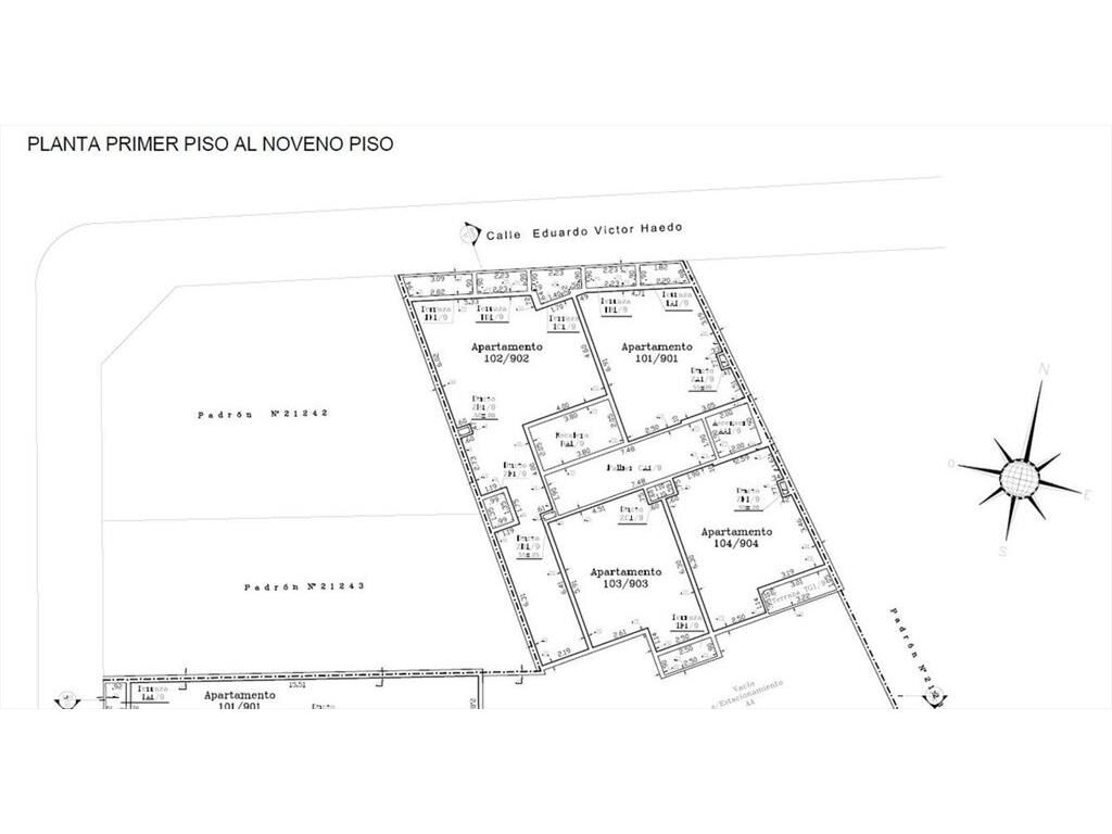 UNIDADA 903, Piso 9, 49.1 m2 edificados, terraza 2.25 m2 aprox. Orientación SE, Contrafrente. Precio: 124.500 usd