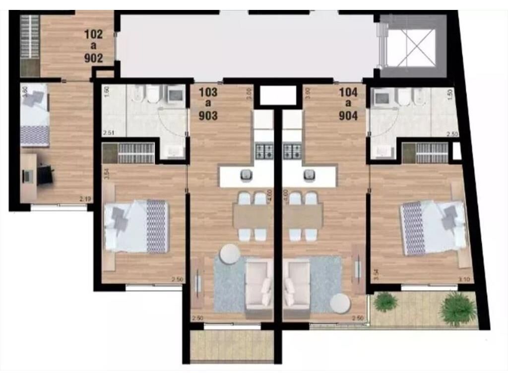 UNIDADA 904, Piso 9, 50.82 m2 edificados, terraza 3.28 m2 aprox. Orientación SE, Contrafrente. Precio: 131.500 usd