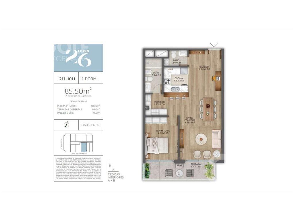 Venta Apartamento 1 Dormitorio con terraza en Pocitos