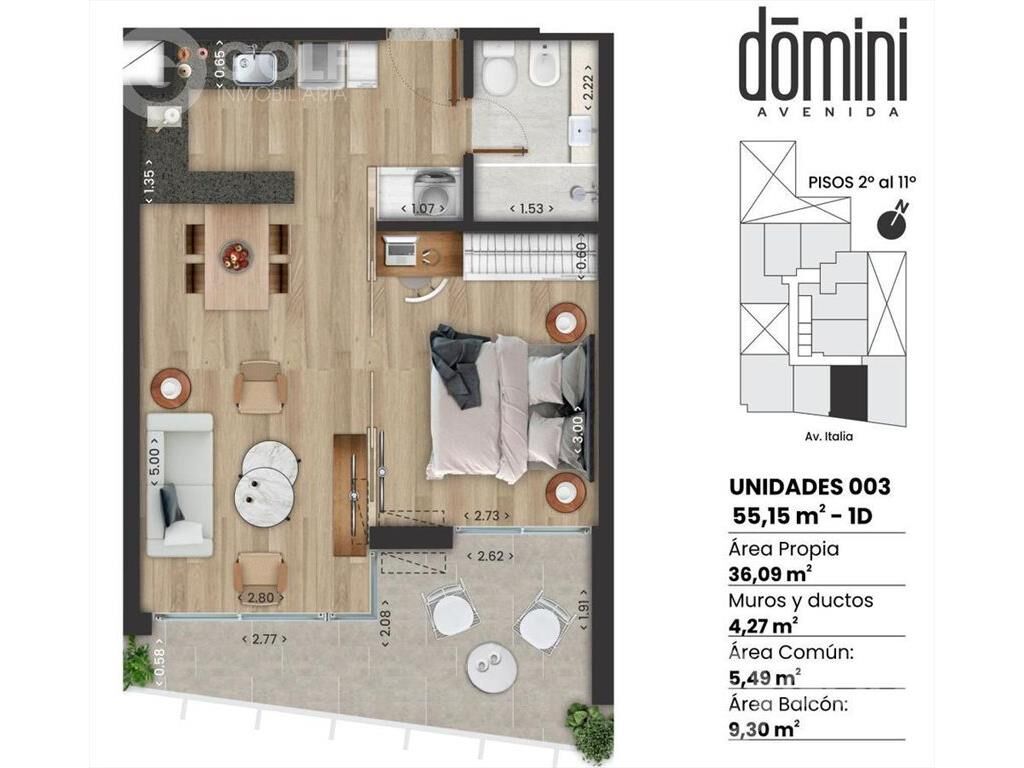 Domini Avenida está ubicado sobre uno de los principales conectores este-oeste de Montevideo, a mitad de camino entre el Centro y Carrasco. Muy cerca de los Shoppings e hipermercados más importantes de la ciudad, como también de los principales centros de salud del país. La cercanía al Parque Batlle completa esta excelente ubicación y equilibra la convivencia urbana con la naturaleza de uno de los grandes pulmones verdes de la ciudad.