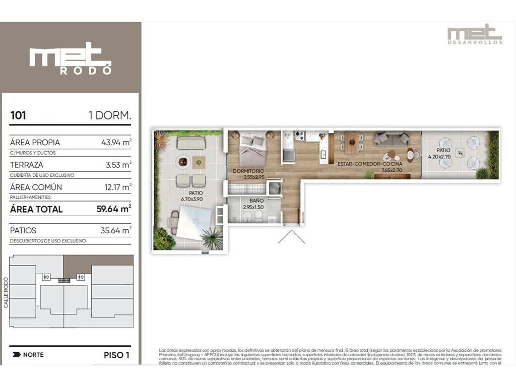 Venta de apartamento 1 dormitorio en Met Rodó, ubicado en Rodó y Acevedo Díaz, zona de gran crecimiento, a pasos de la movida gastronómica y las universidades.