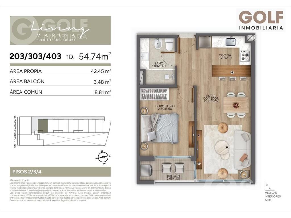 Moderno apartamento de 1 dormitorio ubicado en una de las zonas con mayor crecimiento de Montevideo.