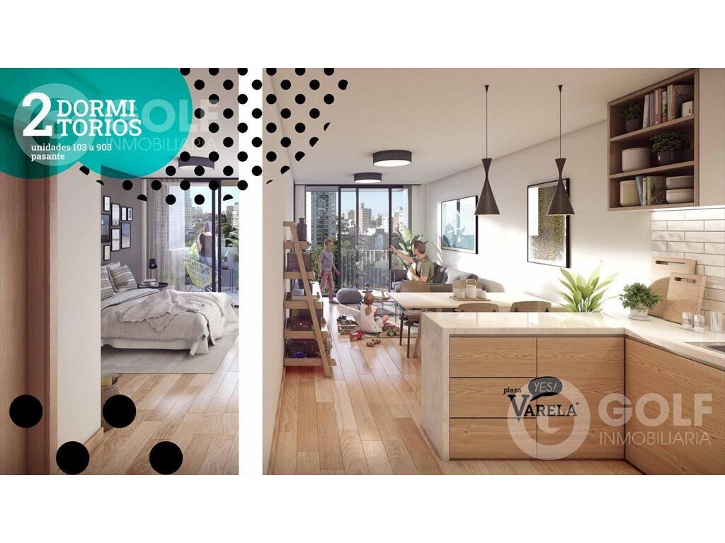 Los apartamentos se entregan con placares en dormitorios, cocinas con muebles aéreos y baja mesada.