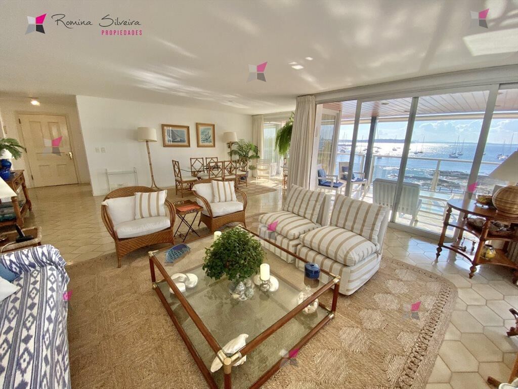 Amplio living comedor, se caracteriza por su diseño abierto y luminoso, con salida directa a un balcón que ofrece una impresionante vista al Puerto de Punta del Este, permitiendo disfrutar de un ambiente relajante y con una excelente orientación solar. Los atardeceres son uno de los principales atractivos de esta propiedad.