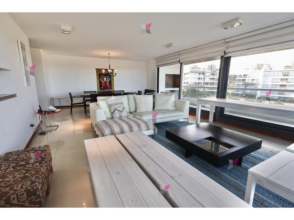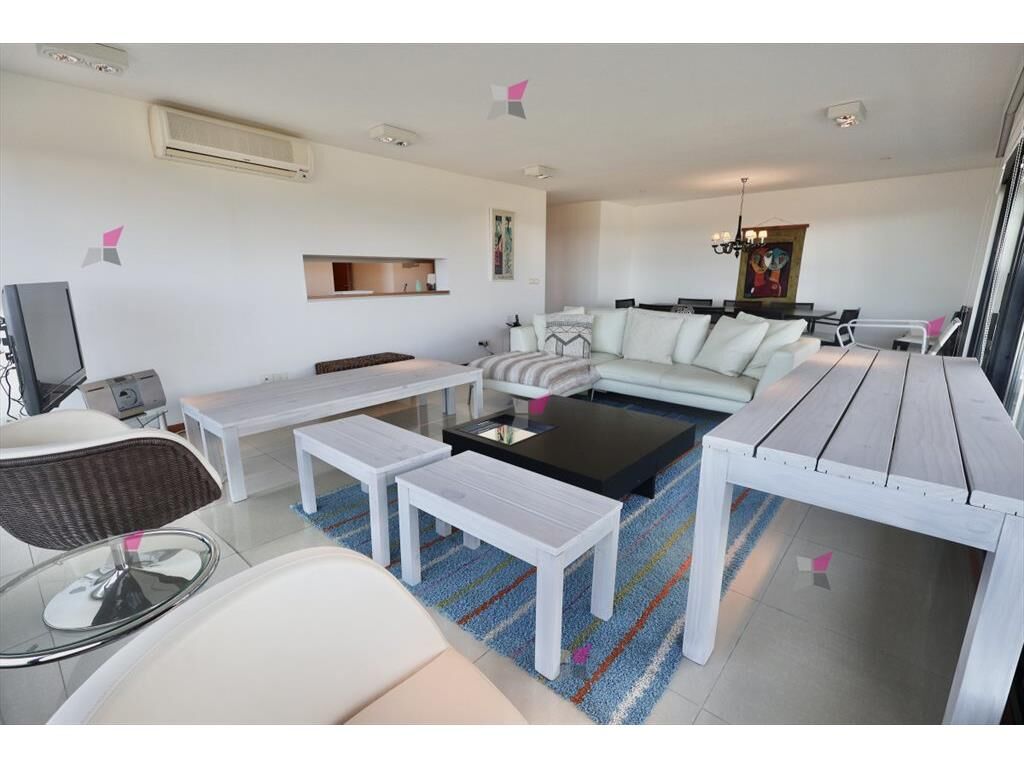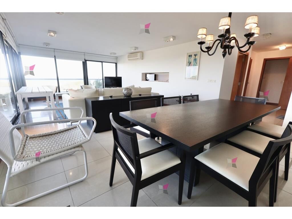 El apartamento cuenta con una planta cómoda y funcional de 142 m interiores más un generoso balcón con parrillero propio, ideal para disfrutar del aire libre con vista al mar. El amplio living-comedor se integra perfectamente con el balcón, creando un espacio luminoso y acogedor.