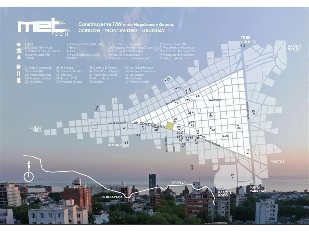 MET Tech se ubica sobre la calle principal del barrio Cordón, en pleno distrito de tiendas de diseño, restaurantes, cafés y rincones que sólo se descubren al perderse por sus calles. Un barrio con un encanto especial por su historia y su rápido proceso de reconversión. El más buscado por gente joven por su cercanía a facultades, a la rambla, al Parque Rodó, al centro,a Tres Cruces y a Punta Carretas.